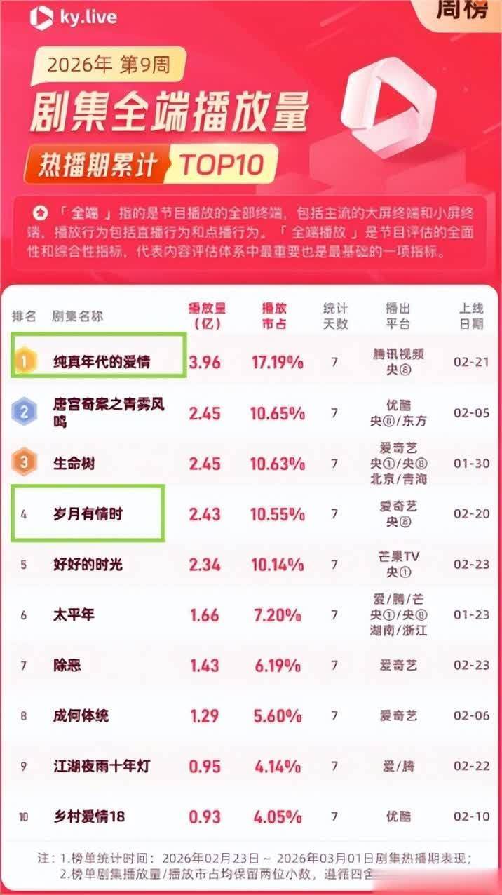 不外全球有莫得肃肃到,《岁月多情时》刚开播的技巧然而碾压同题材《纯碎时间的爱情》这部剧的。
