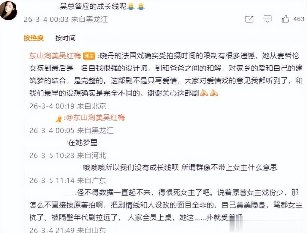而吴红梅对此的回话是这部剧是群像剧,并不是独一男女主。