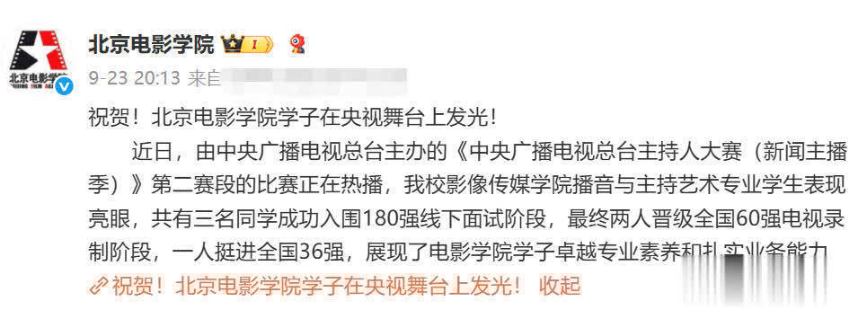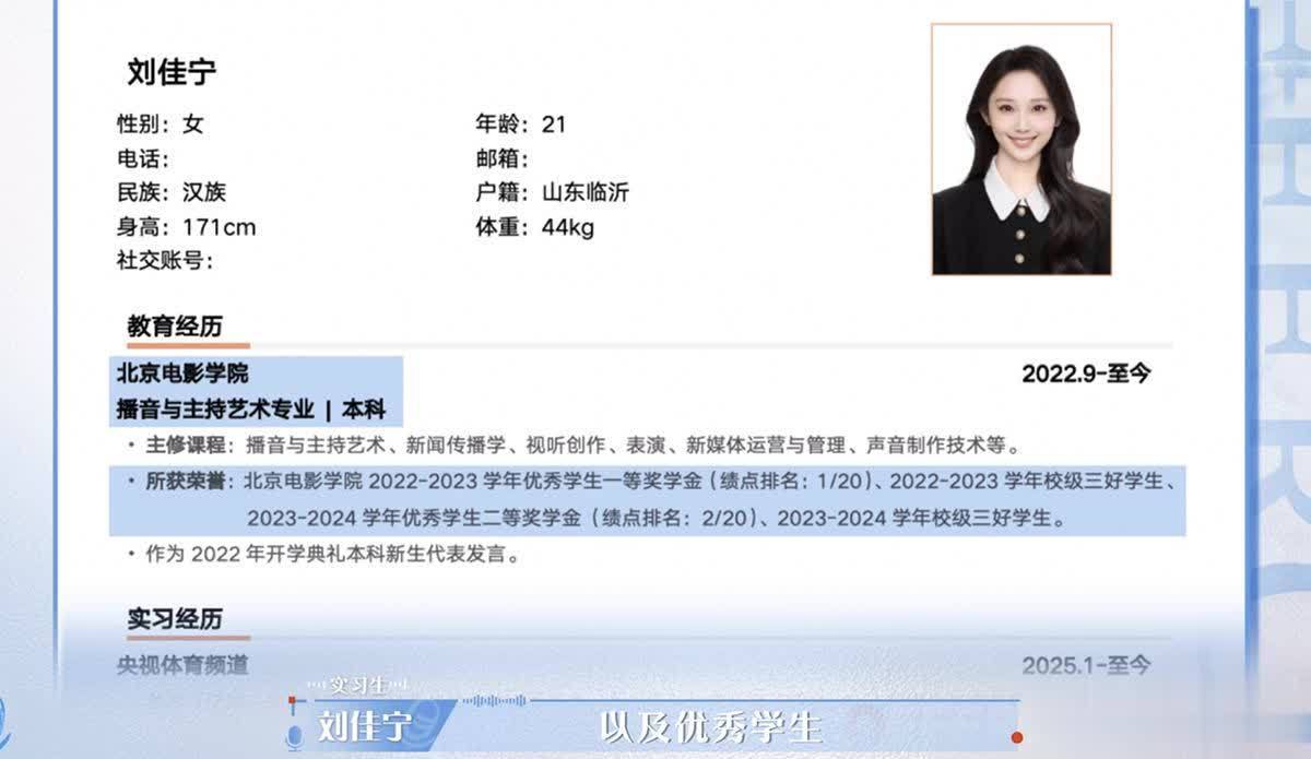 刘佳宁能有这么的推崇其实少许也不料外,她是彻头彻尾的学霸选手,2022年她得回山东省播音统考第二名,获北京电影学院播音与主理专科天下第二名、女生第别称。大学在校时候,她还拿了安徽卫视《我是主理东谈主》比赛天下总冠军。