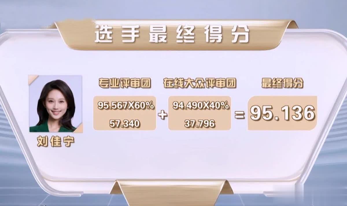 刘佳宁的首秀让东谈主印象真切,她身上有一种扑面而来的干净气质,专科评审给出95.567分,大师评审给出94.490分,刘佳宁最终拿到95.136分,在出场的10位选手中排行第6,进而顺利晋级天下36强。