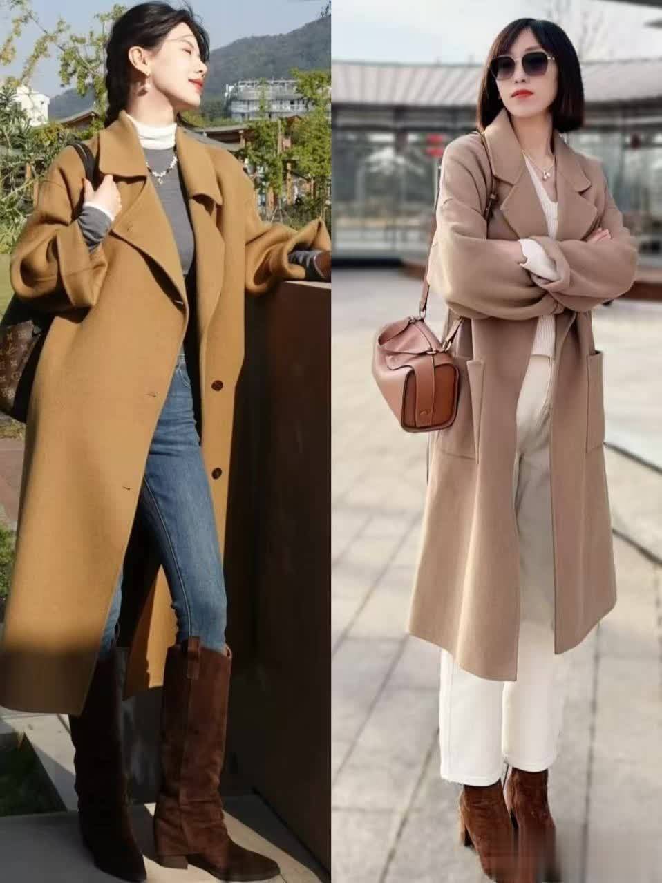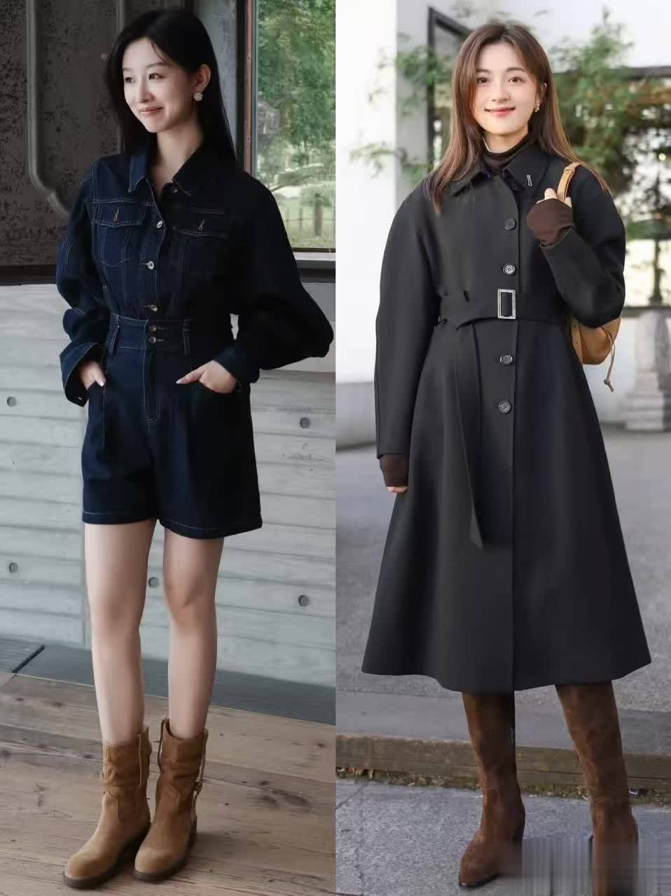麂皮靴的防风防寒性不输其他靴子,收紧的靴筒还能让腿型显得更纤细。大衣搭配麂皮靴时,提倡选直筒版型、过膝但不外踝的长度,这么既能流露纤细的脚踝,又能让举座造型显得轻细高档。