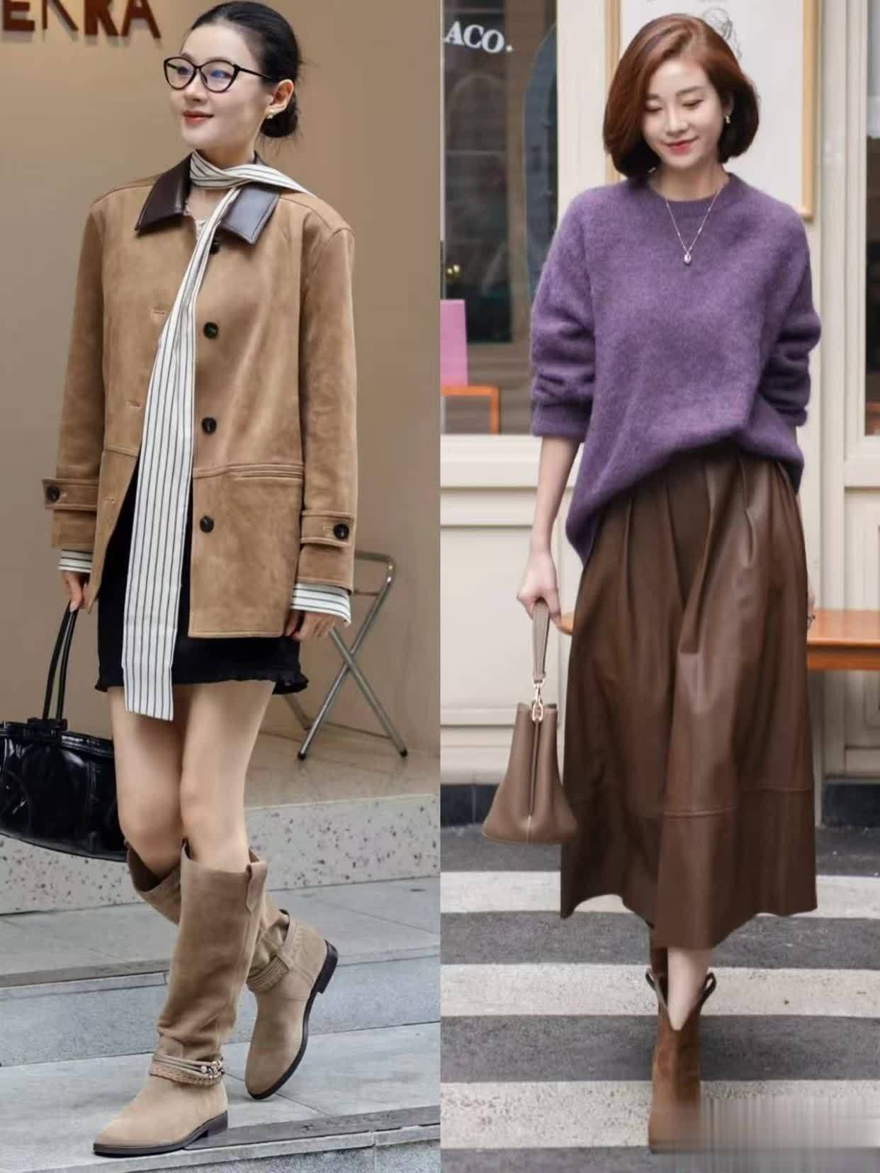 #麂皮靴穿搭 #冬日穿搭技术 #中年女性穿搭 #前锋搭配指南