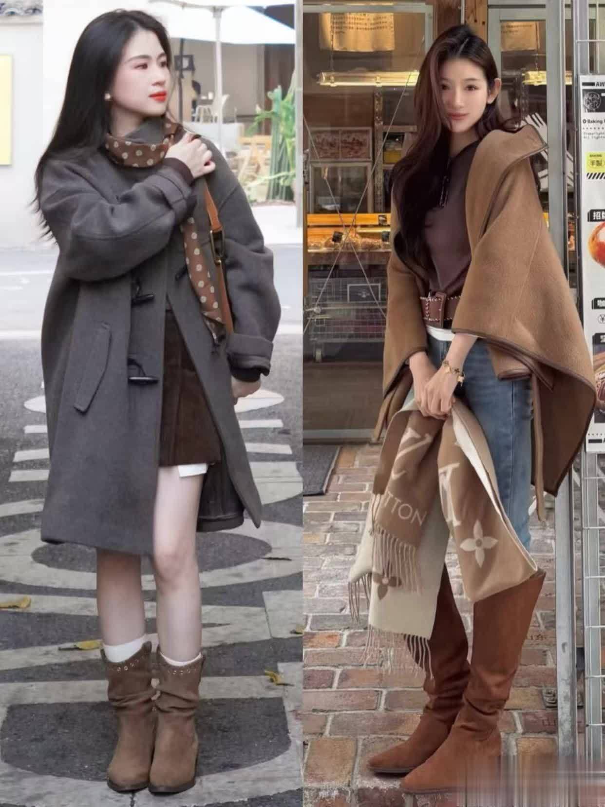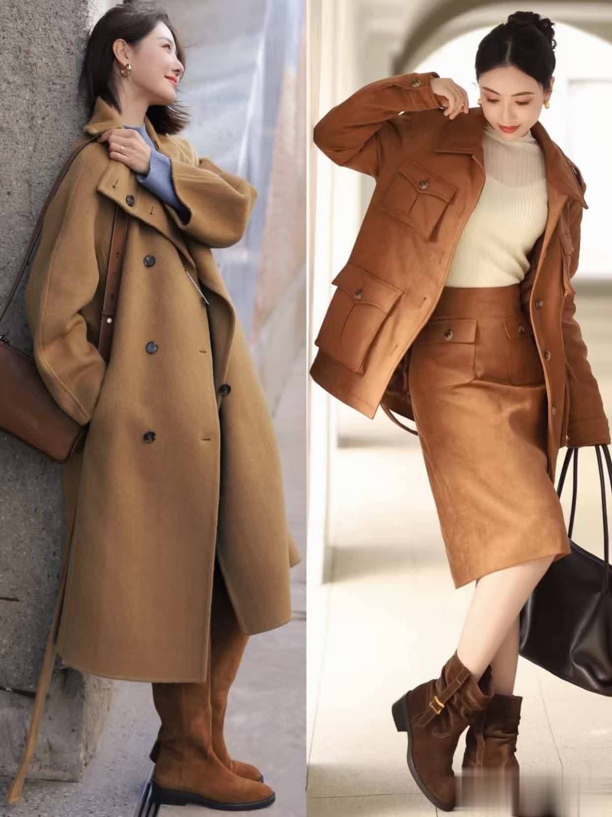 第三章:麂皮靴穿搭小技术,松驰拿持冬日氛围感①荆棘同色搭配,保持造型延伸感