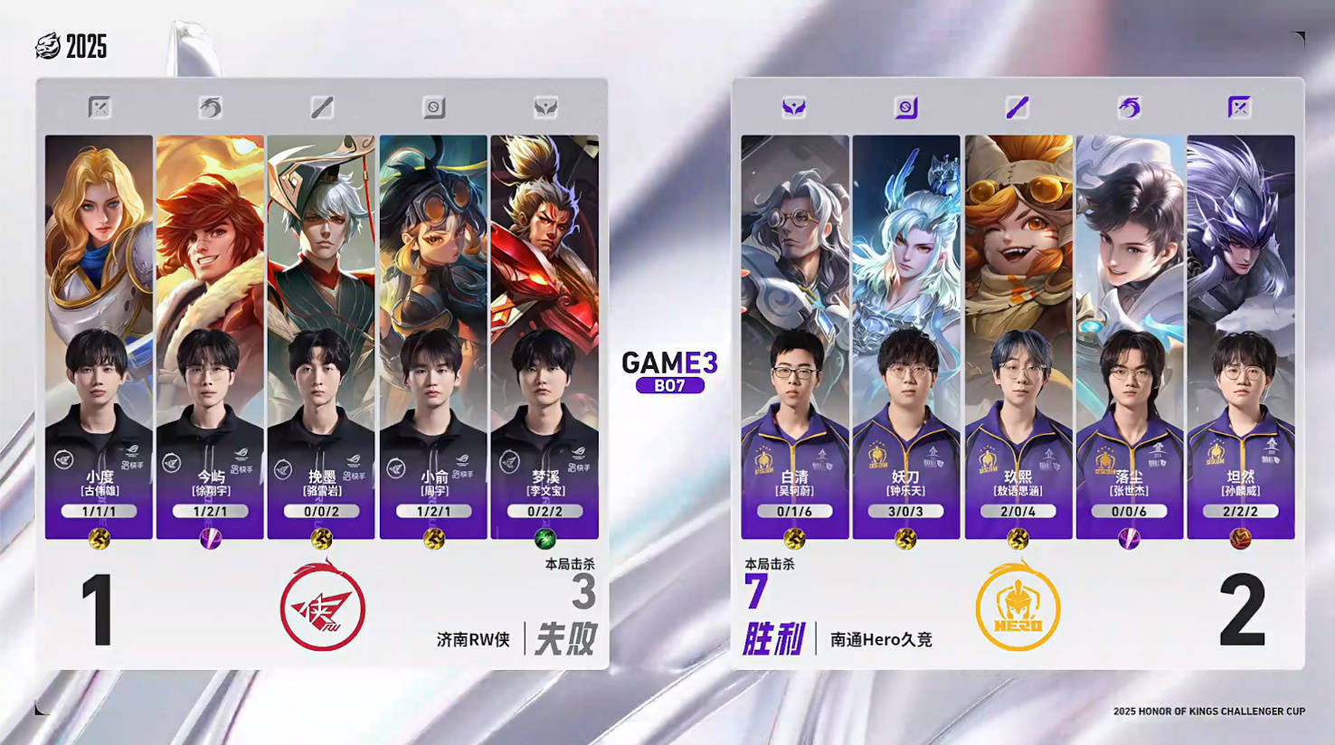 Hero少一个东谈主的情况下念念强行秒专揽,但伤害有点不够,RW世东谈主追上来,妖刀抢到了龙,这波运谈仍是卓越好了,但镜如故被哪吒大招飞了,如故小俞拿下击杀,hero通顺掉点。临了的决胜团hero问题很大,安靖关羽绕后一个打三个,但饱和莫得队友能跟他沿途冲,就导致安靖孤单无援先倒了。哪吒和姬小满留下hero四东谈主,女娲大招伤害打满。镜换位去切公孙离也莫得收效,在中后期团战的解决上,RW如实更胜一筹。最终RW打出团灭,4-2驯顺hero,收效晋级胜者组决赛。