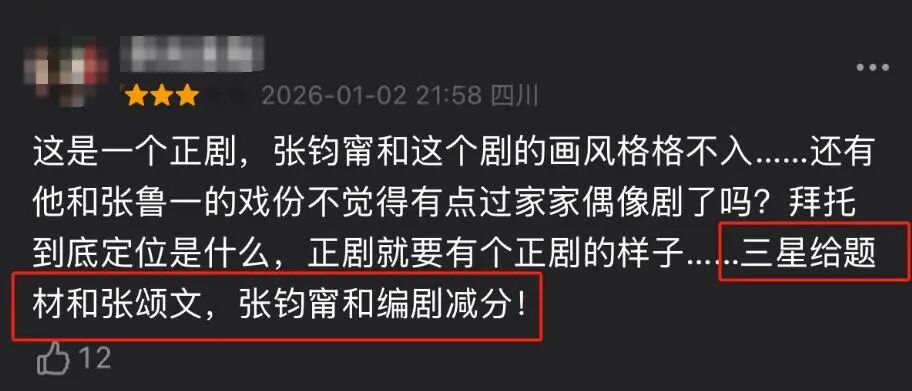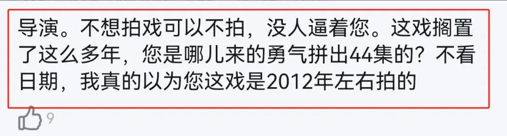 有不雅众吐槽:“每次听到这些别离时宜的台词,我都得反映半天,这到底是在哪个年代?”