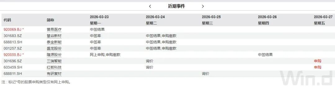 其中,隆源股份将于3月23日开启申购,申购代码为920055。三瑞智能、红板科技将于3月27日开启申购,申购代码永诀为301696和732459。
