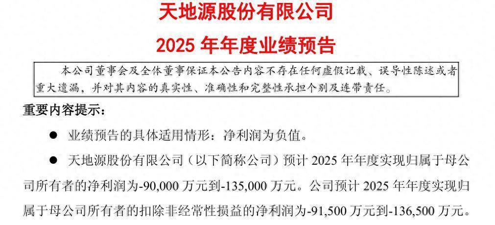 1月18日晚间,全国源(600665)公告称,公司瞻望2025年年度已毕包摄于母公司悉数者的净利润-13.5亿元至-9亿元;包摄于母公司悉数者的扣除非频频性损益的净利润-13.65亿元至-9.15亿元。